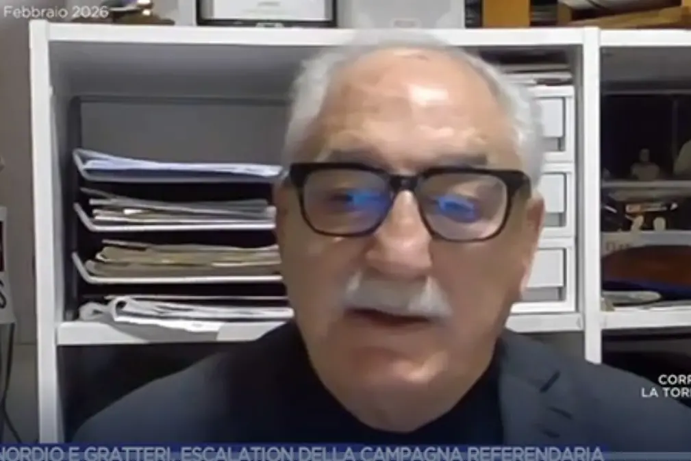 Armando Spataro, già magistrato e del Comitato Società Civile per No; e Antonio Di Pietro, gia magistrato ed esponente del Comitato per il Si, a confronto nello studio di Amnibus su La7 guidata dalla giornalista Alessandra Sardoni.