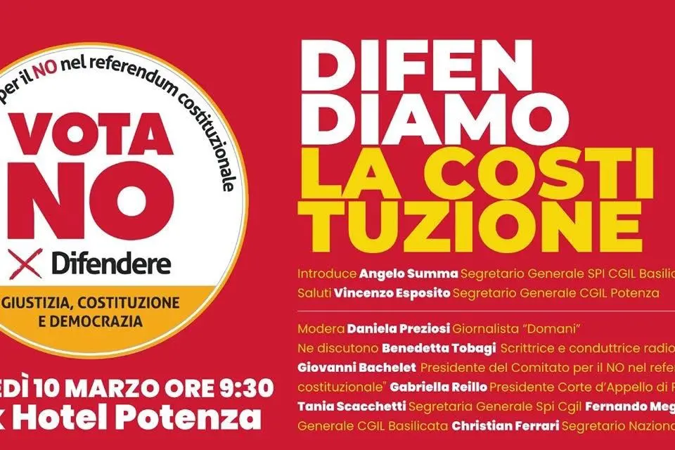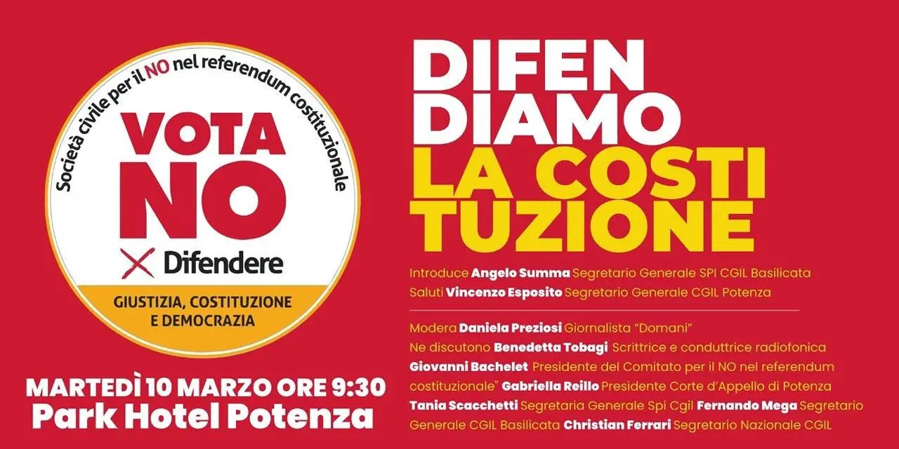 Interverranno tra gli altri: Giovanni Bachelet, presidente del Comitato Società Civile per il No; Benedetta Tobagi, storica e scrittrice; Gabriella Reillo, presidente della Corte di Appello di Potenza; Tania Scacchetti, segretaria generale dello Spi; Fernando Mega, segretario generale della Cgil Basilicata; Christian Ferrari, segretario nazionale della Cgil. Coordinerà la mattinata Daniela Preziosi giornalista del Domani