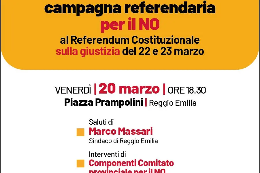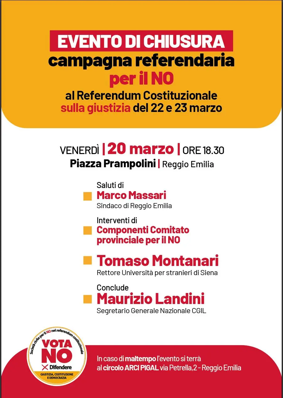 Maurizio Landini, segretario generale della Cgil, e Tomaso Montanari, rettore Università per stranieri di Siena chiudono la campagna per il No al referendum costituzionale del 22 e 23 marzo a Reggio Emilia in piazza Prampolini