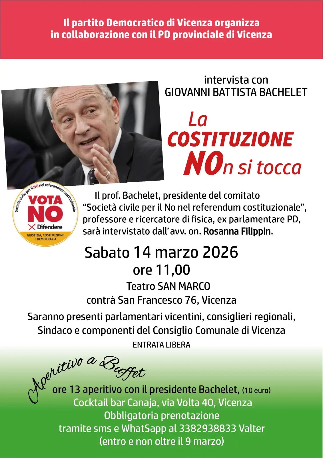 Il presidente del Comitato Società Civile per il No, Giovanni Bachelet, incontra i cittadini e le cittadine di Vicenza per illustrare le ragioni del No al referendum costituzionale del 22 e 23 marzo sulla riforma Nordio