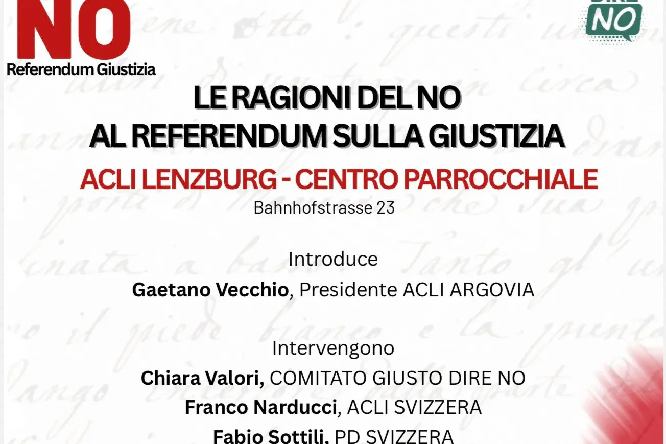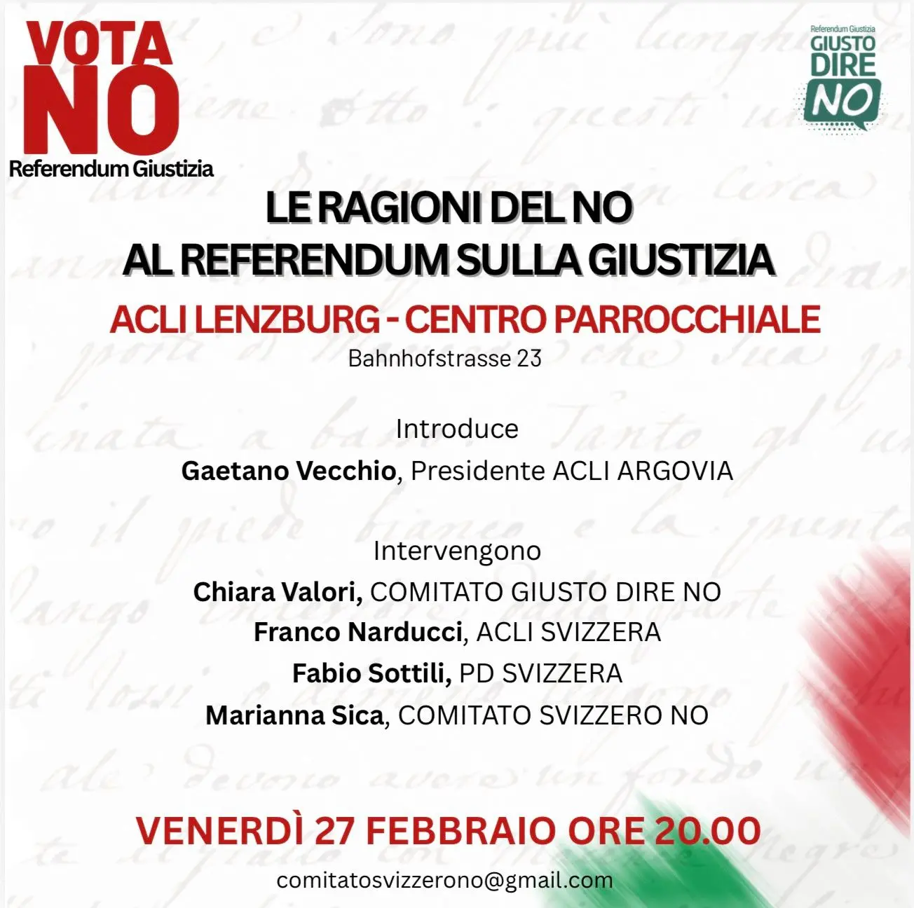 Anche all’estero si vota, a Zurigo le Acli hanno organizzato un’importante iniziativa con: Gaetano Vecchio, presidente Acli Argovia; Chiara Valori, Comitato Giusto Dire No; Franco Narduzzi, Acli Svizzera; Fabio Sottili, Pd Svizzera; Maria Sica Comitato Svizzera No