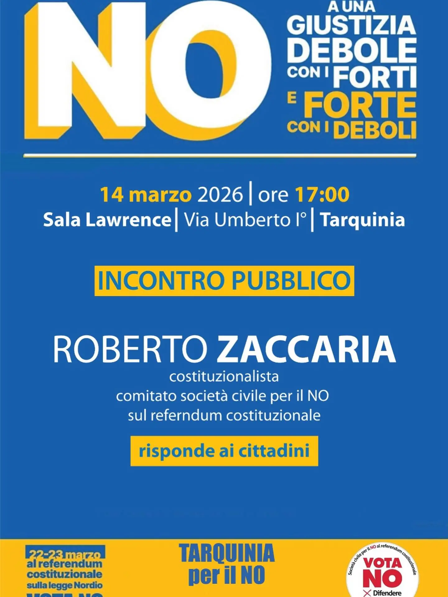 Incontro pubblico con Roberto Zaccaria, coordinatore Consiglio Scientifico del Comitato Società Civile per il No, sulle ragioni del No al referendum del 22 e 23 marzo sulla riforma della giustizia