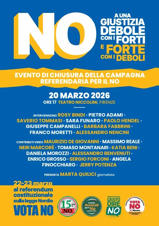 In tante e tanti per dire No al referendum e chiudere insieme la campagna referendaria per la legge Meloni Nordio. Tra i partecipanti Rosy Bindi del Comitato Società Civile per il No