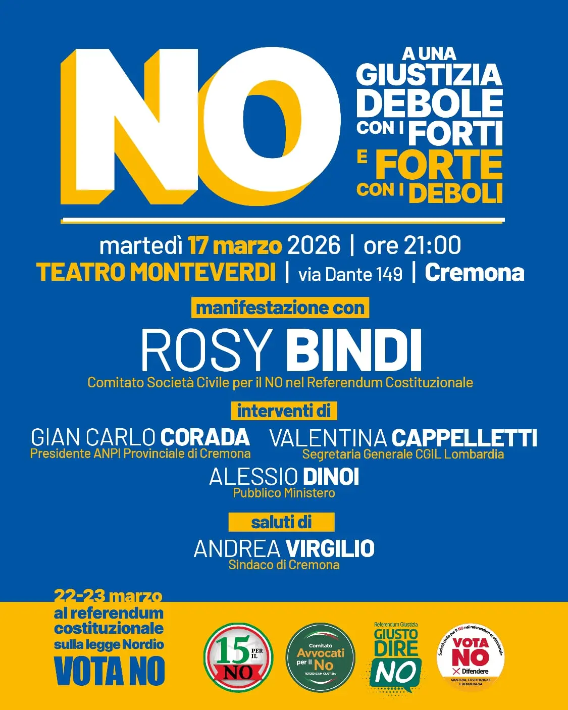 Rosy Bindi partecipa a una iniziativa sulle ragioni del No al referendum del 22 e 23 marzo sulla riforma Nordio