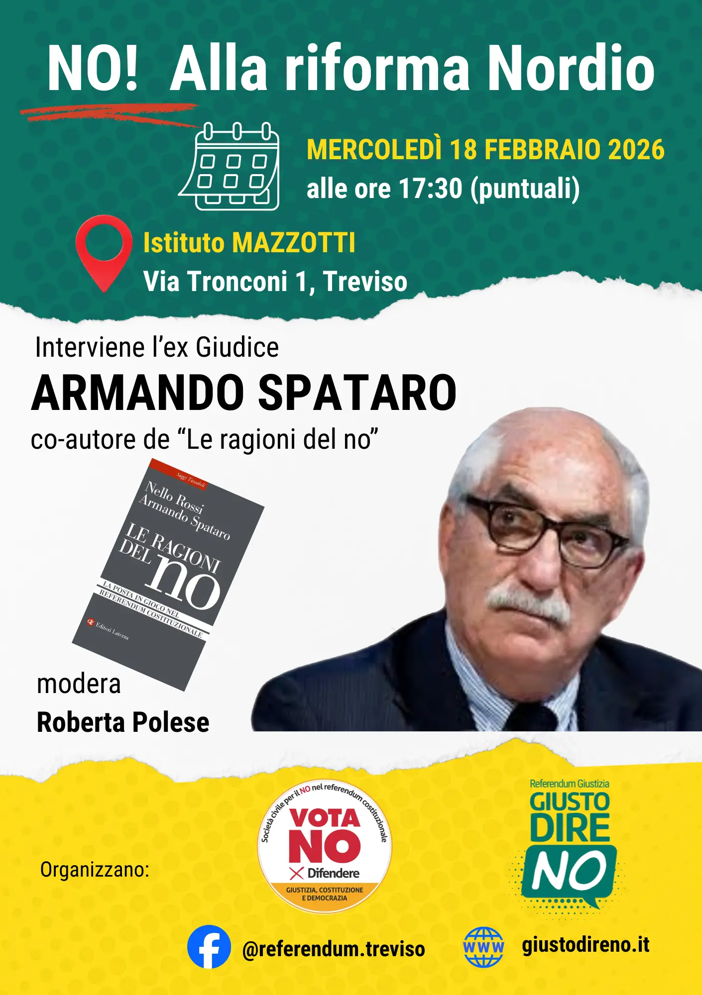 L’ex magistrato Armando Spataro, Comitato Società Civile per il No, spiegherà perché votare No al referendum costituzionale sulla Riforma Nordio del 22 e 23 marzo.