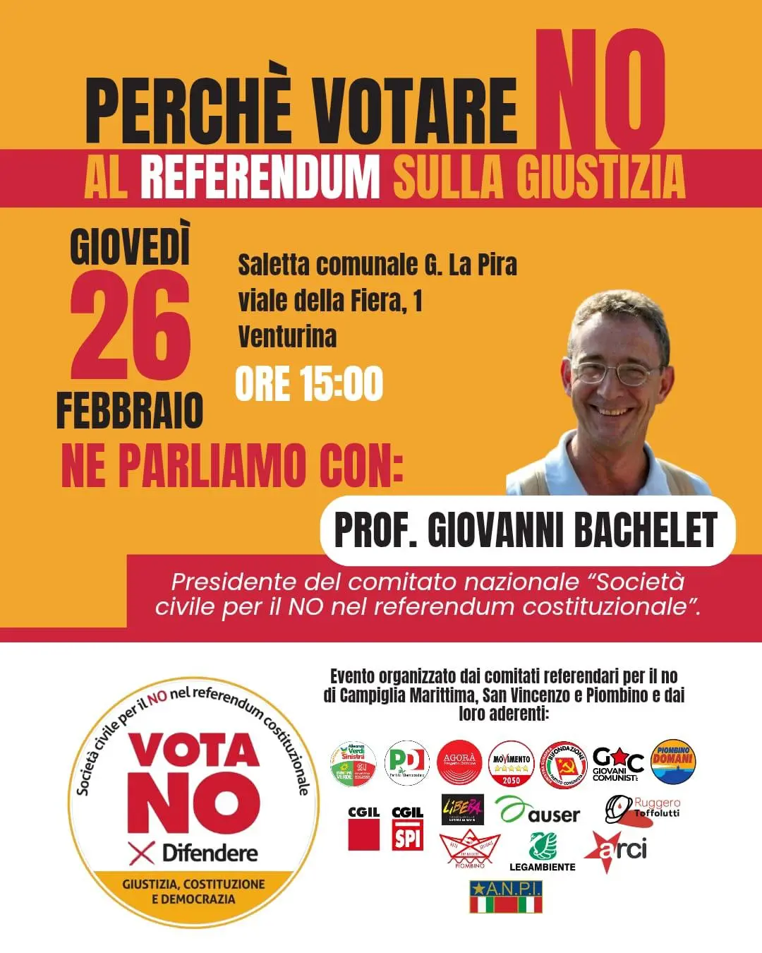 Una conversazione proposso dai soggetti della società civile e dai partiti che si impegnano per il No al referendum del 22 e 23 marzo sulla riforma Nordio, con Giovanni Bachelet, presidente del Comitato Società Civile per il No