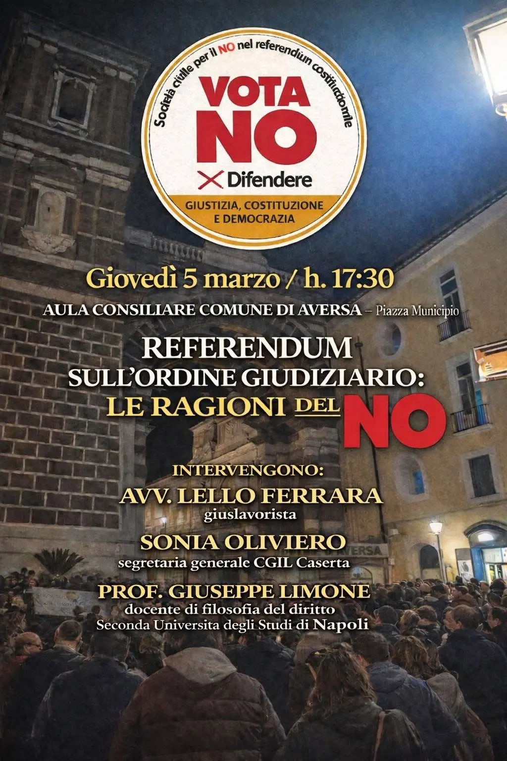 Con la segretaria generale della Cgil di Caserta, Sonia Oliviero interverranno ad una importante iniziativa sulle ragioni del No al referendum del 22 e 23 marzo prossimo sulla riforma Nordio: Lello Ferrara, avvocato giuslavorista e Giuseppe Limone, docente di filosofia del diritto alla Seconda Università di Napoli