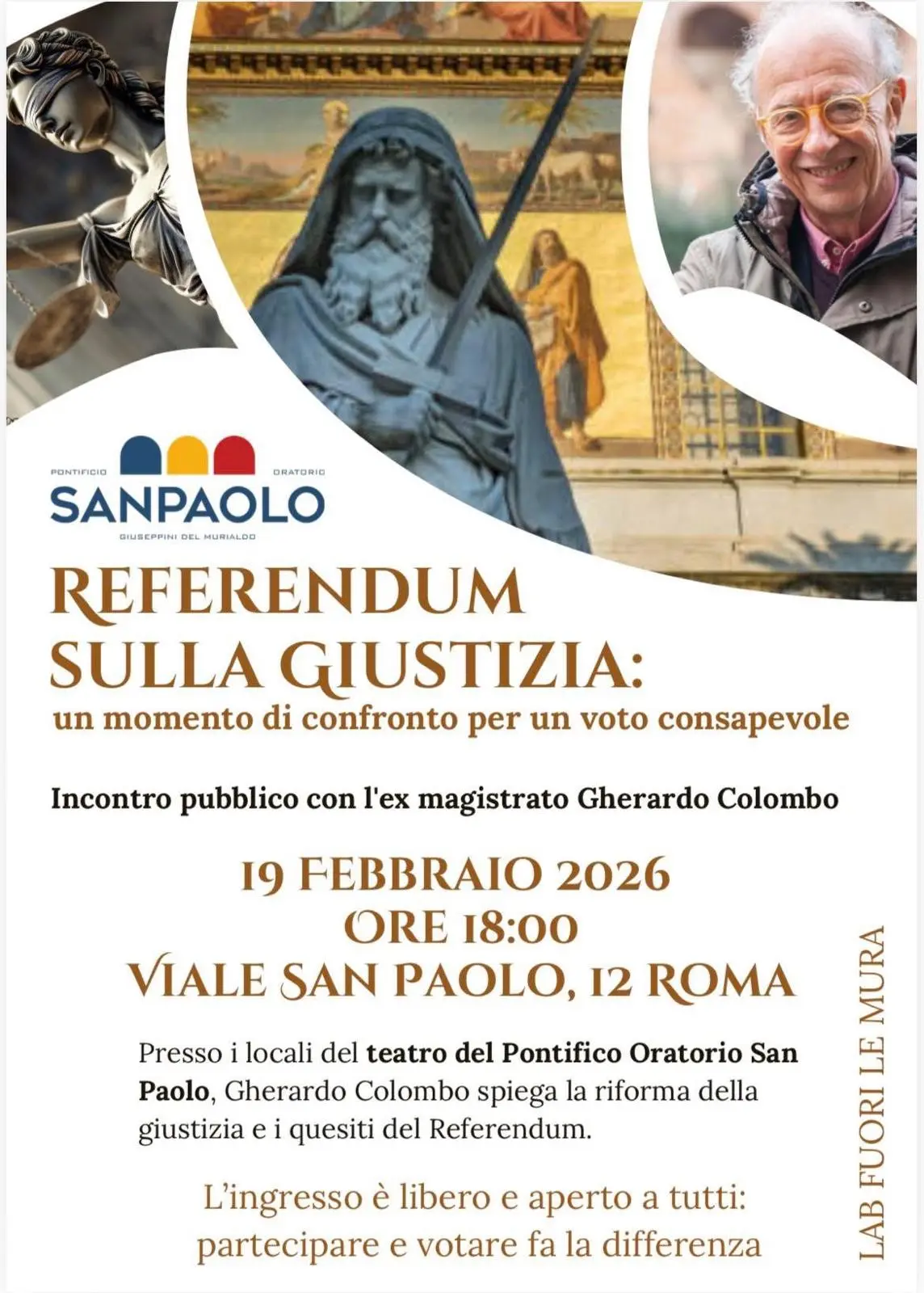 “Partecipare e votare fa la differenza”. questa è una delle affermazioni dalla quale si è partiti per organizzare l’incontro pubblico con l’ex magistrato Gherardo Colombo sul Referendum del 22 e 213 marzo sulla riforma Nordio. L’appuntamento è a Roma il 19 febbraio alle ore 18.00 nel Teatro Pontificio Oratorio San Paolo, Viale San Paolo, 12
