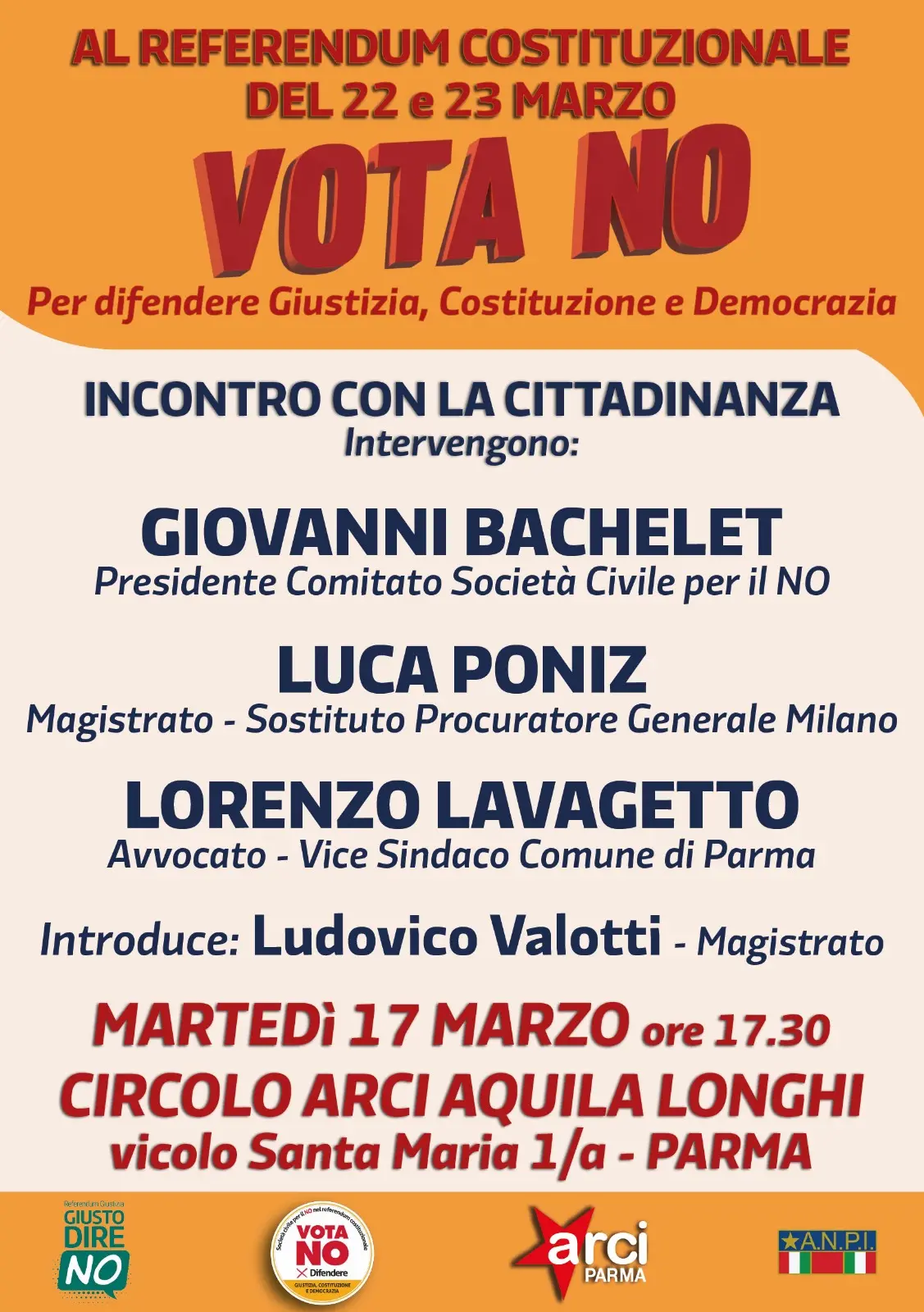 Giovanni Bachelet, presidente del Comitato Società Civile per in NO incontro la cittadinanza di Parma per illustrare le ragioni del No al referendum del 22 e 23 marzo sulla riforma Nordio