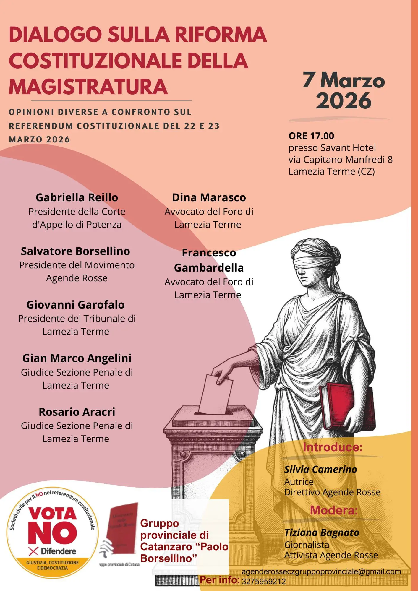 Opinione diverse a confronto sul referendum costituzionale del 22 e 23 marzo sulla riforma Nordio. Con, tra gli altri, Salvatore Borsellino, presidente Movimento Agende Rosse