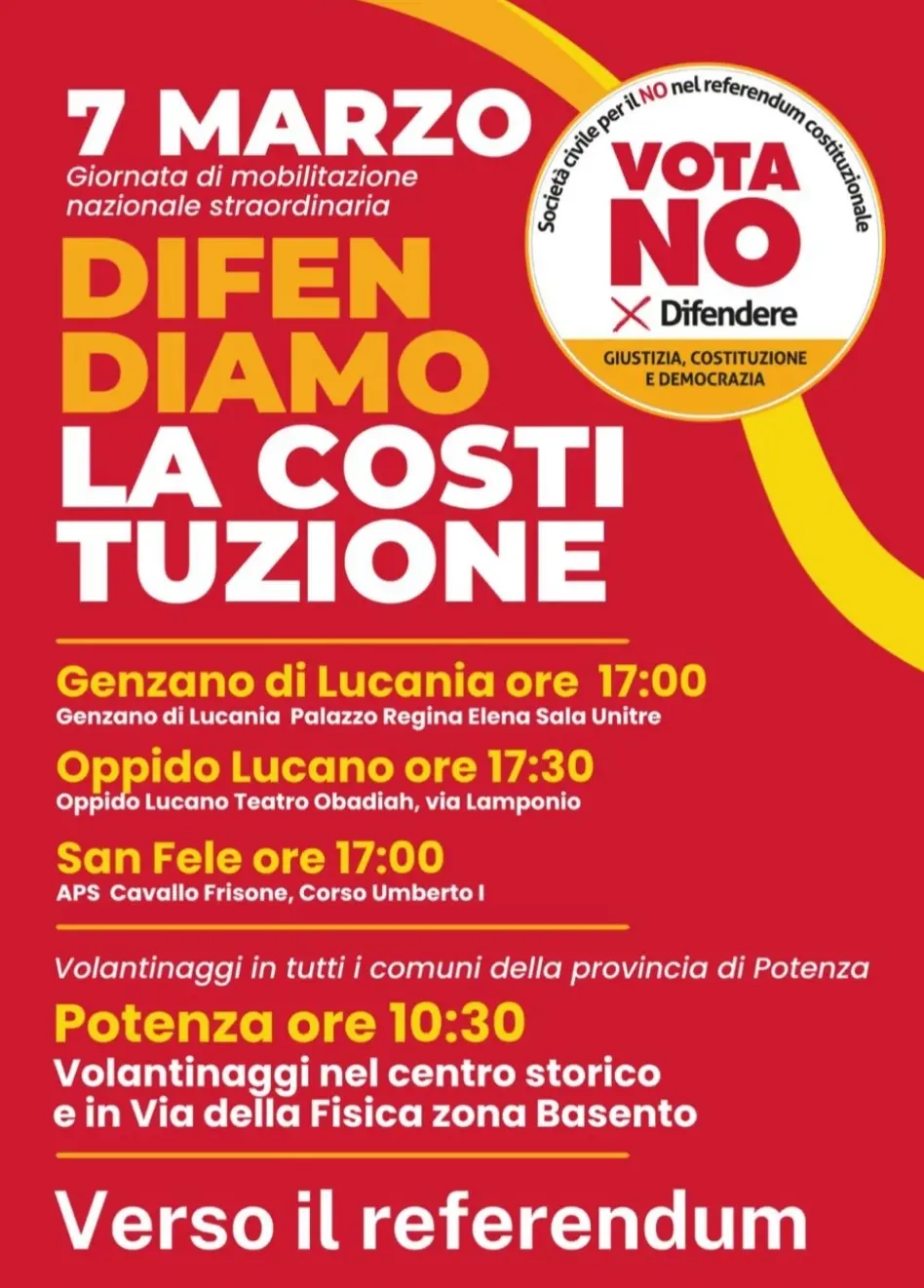 Volantinaggi e iniziative di piazza in tutta la provincia di Potenza per illustrare le ragioni del No al referendum sulla riforma Nordio