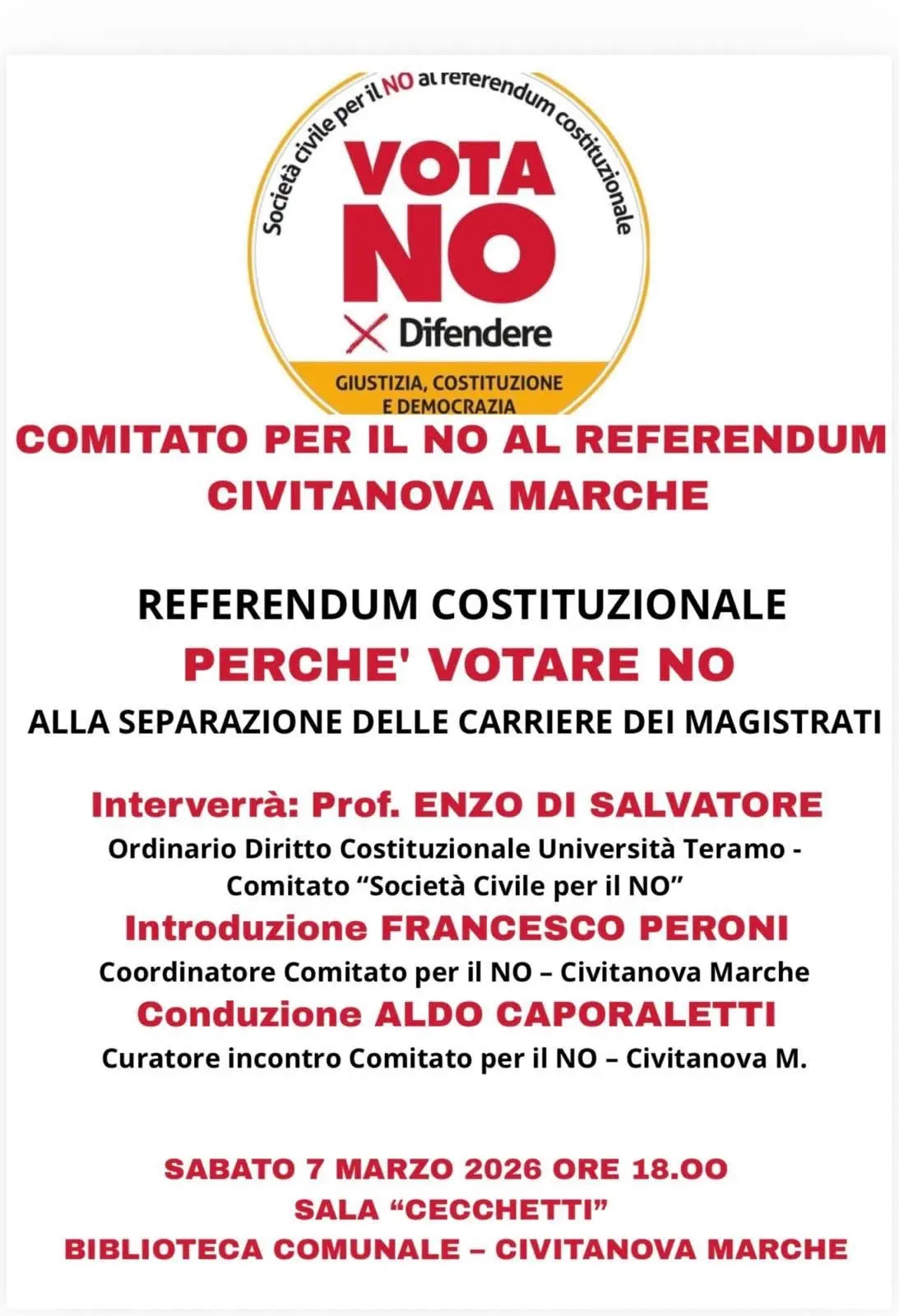 Le ragioni del No al referendum del 22 e 23 marzo sulla magistratura con: Enzo Di Salvatore, ordinario diritto costituzionale Università di Teramo