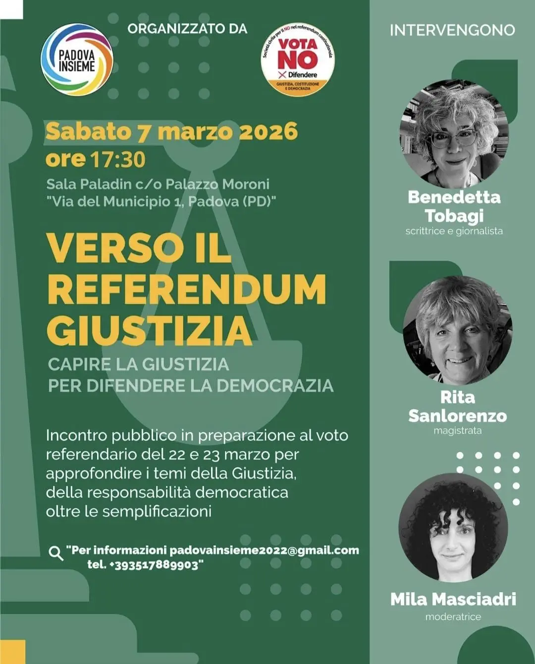 Per in No al referendum sulla riforma Nordio con Benedetta Tobagi, Comitato Società Civile per il No; Rita Sanlorenzo, magistrata;